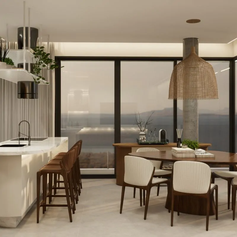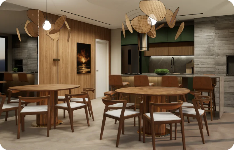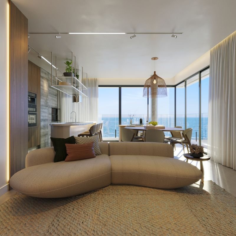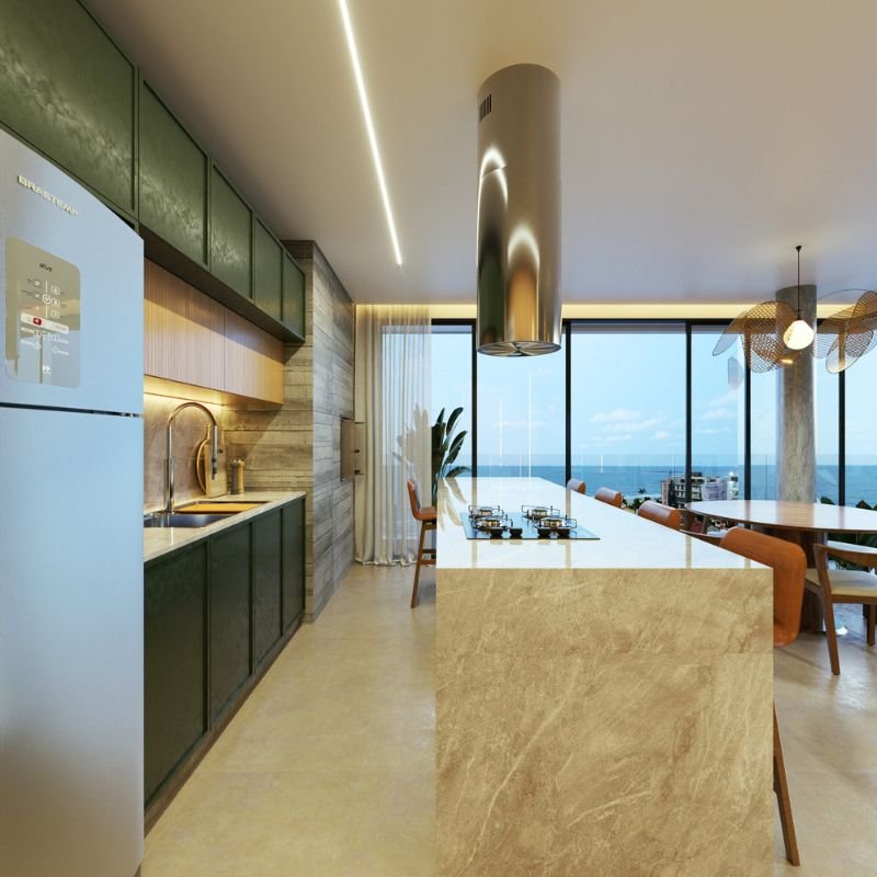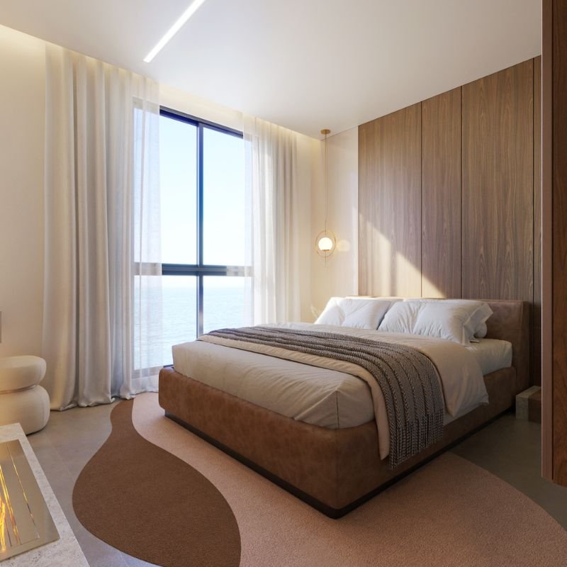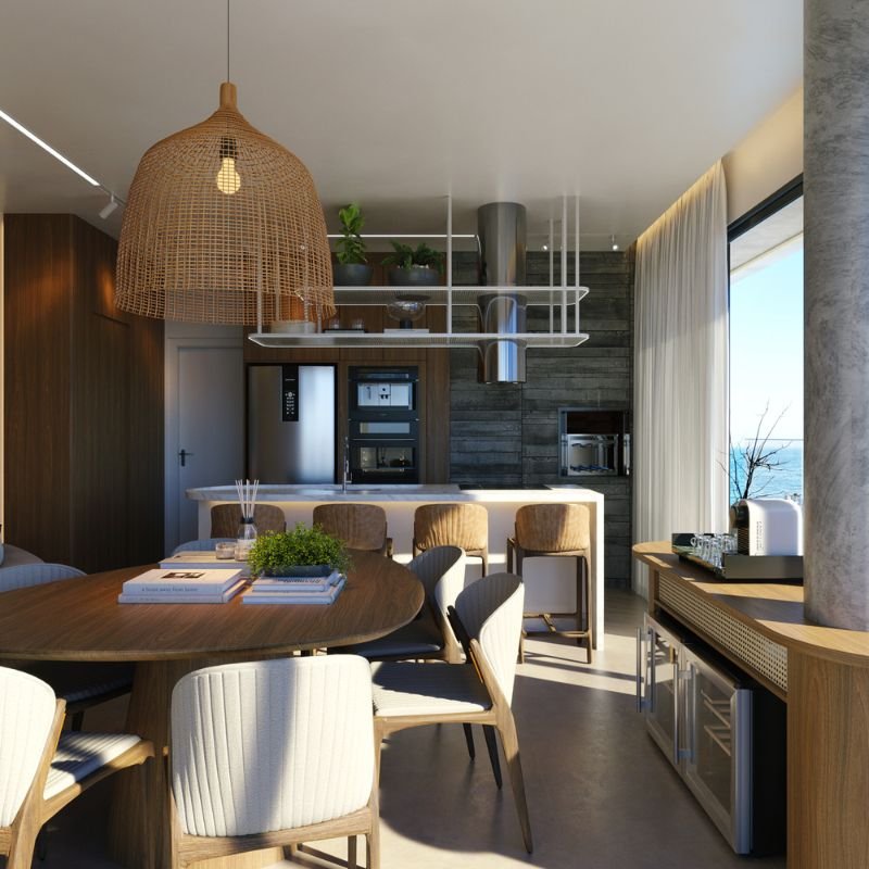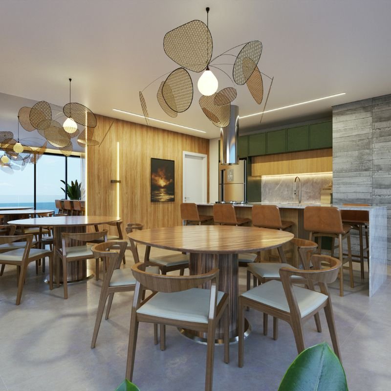Todo o projeto foi cuidadosamente planejado para valorizar a vista para o mar, com amplas aberturas e áreas sociais estrategicamente posicionadas nas quinas do edifício, garantindo uma ventilação eficiente e iluminação natural.